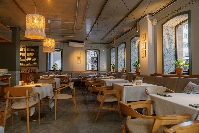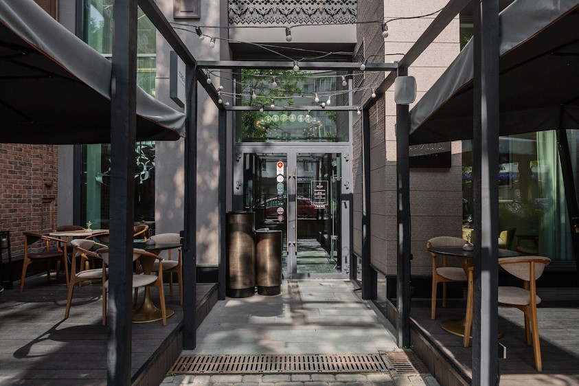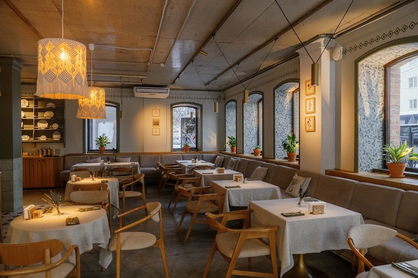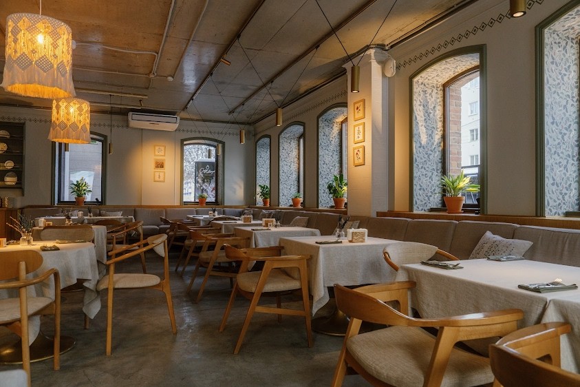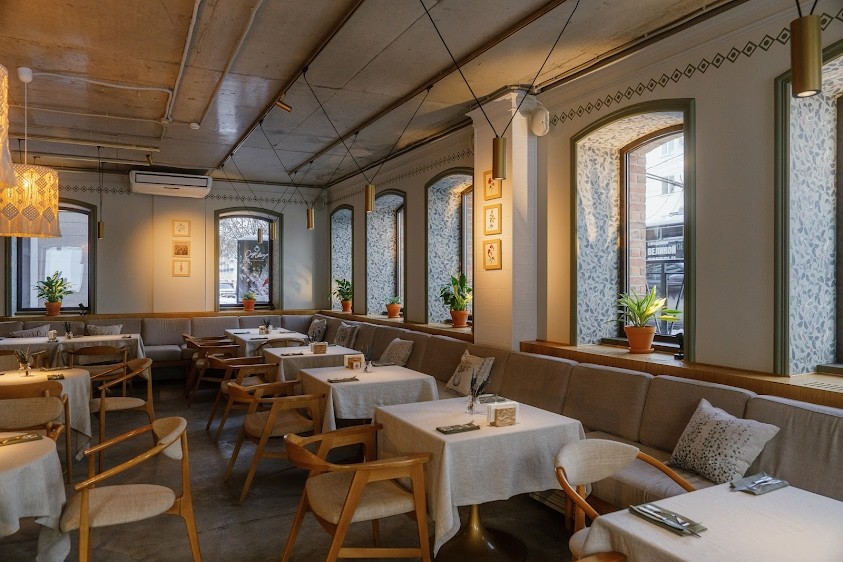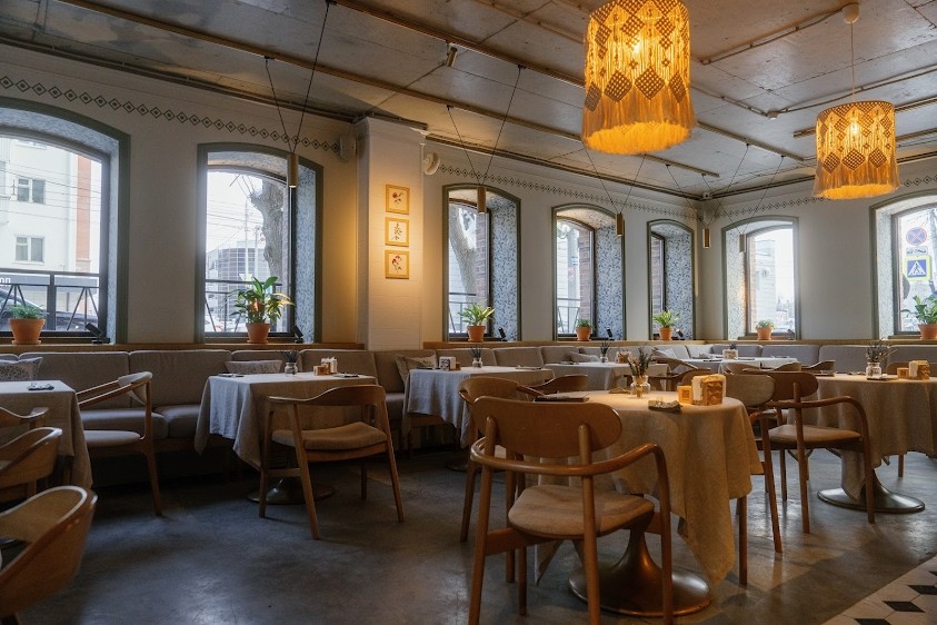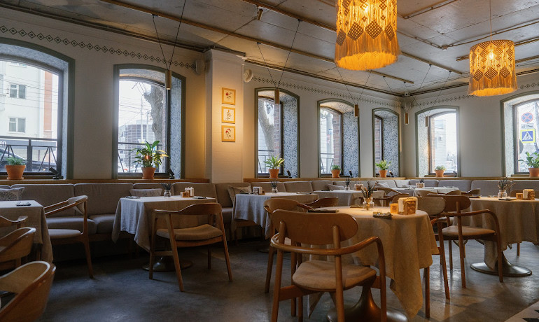 Двухэтажный ресторан "Птицы" расположен в ЖК "Аристократ" рядом с ПКиО им. Ивана Якутова в центре Уфы.