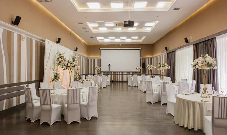 Для проведения торжественного банкета предоставляется три просторных и светлых зала. В залах можно организовать шоу-программу, танцевальную площадку или выступление артистов.